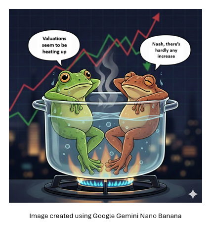 As long as flows remain strong, the system reinforces itself. Higher valuations validate prior decisions, which then become the benchmark for the next trade. What makes this shift especially dangerous is that it happens gradually. Valuation standards are not reset overnight. They drift quietly and persistently, until what once felt extreme now feels normal. This is the boiling frog syndrome: a 40x earnings multiple is no longer “expensive”, it is the new 20x.